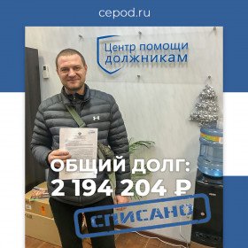 Елена Васильевна обратилась к нам с долгом 1,3 млн. руб. Долги накопились по 3 банкам и 26 МФО. Несколько дней назад мы передали Елене определение об окончании процедуры банкротства и освобождением от обязательств.